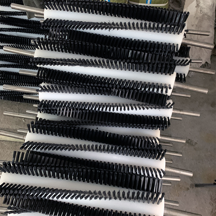 2.  Nylon PA6 cleaning roller brush with steel shaft for solar panel.